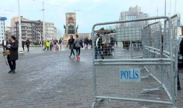 Beyoğlu'nda yılbaşı hazırlıkları kapsamında Taksim Meydanı ve Gezi Parkı'na demir bariyerler yerleştirildi. İstiklal Caddesi’ne çıkan ara sokaklara da demir bariyer konuldu. Diğer yandan polis ekipleri Gezi Parkı girişinde bekleyişini sürdürüyor. Taksim Meydanı ve İstiklal Caddesi’ne gelen turistler ise, meydan ve sokaklardaki süslemelerin önünde fotoğraf çektirmeyi ihmal etmedi. (DHA)