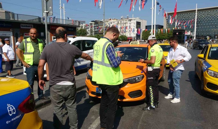 İstanbul Emniyet Müdürlüğüne bağlı trafik polisleri tarafından Taksim Meydanı’nda yapılan denetimde 4 ticari taksiye para cezası kesilerek, araçlar bağlandı.