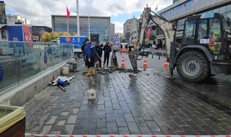 İstanbul Büyükşehir Belediyesi’ne bağlı İstanbul Su ve Kanalizasyon İdaresi (İSKİ) ekipleri tarafından Taksim Meydanı’nda yapılan çalışmalar esnasında iş makinesi su borusunu patlattı. Meydanın bir kısmı sular altında kalırken, suyun patladığı kısım iş makinesi tarafından kapatılarak suyun yükselmesi önlendi. Bazı noktalarda oluşan su birikintileri nedeniyle vatandaşlar yürümekte güçlük çekti. İSKİ ekipleri tarafından yapılan çalışmalar nedeniyle bölgede trafikte aksamalar yaşanırken, çalışmaların devam ettiği öğrenildi.