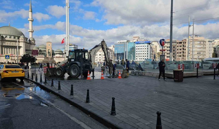 İstanbul Büyükşehir Belediyesi (İBB) ekipleri tarafından Taksim’de yapılan çalışmalar esnasında iş makinesinin su borusunu patlatması nedeniyle meydan sular altında kaldı. Çalışmalar esnasında vatandaşlar, su birikintileri nedeniyle yürümekte güçlük çekti.