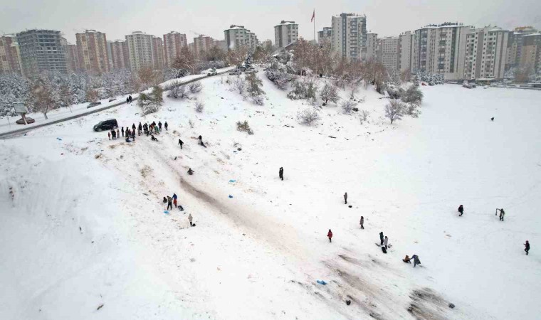 Arkadaşlarıyla eğlenmeye gelen çocuklar da “Kızakla kayıyoruz. Çok eğeleniyoruz. Çok mutluyuz. Başkanımız keşke okulları bir gün daha tatil yapsanız” diye konuştu.