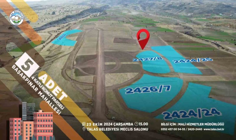 Talas Belediyesi kaçırılmayacak yatırım fırsatları sunmaya devam ediyor. Toplam 8 parça taşınmazdan ilk olarak mülkiyeti Talas Belediyesi’ne ait Başakpınar Mahallesi’nde bulunan çeşitli büyüklüklerdeki 5 konut parselinin satışı yapılacak. Kapalı teklif yoluyla yapılacak ihalelerde Malatya yolu üzerinde bulunan arsalar alıcısını bulacak.