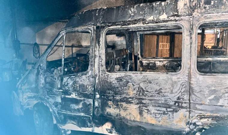 Sakarya’nın Pamukova ilçesinde tamir için bırakılan minibüs alev alev yandı. Yerinden hareket eden araç, tamirhane içine girerek maddi hasara sebep oldu.