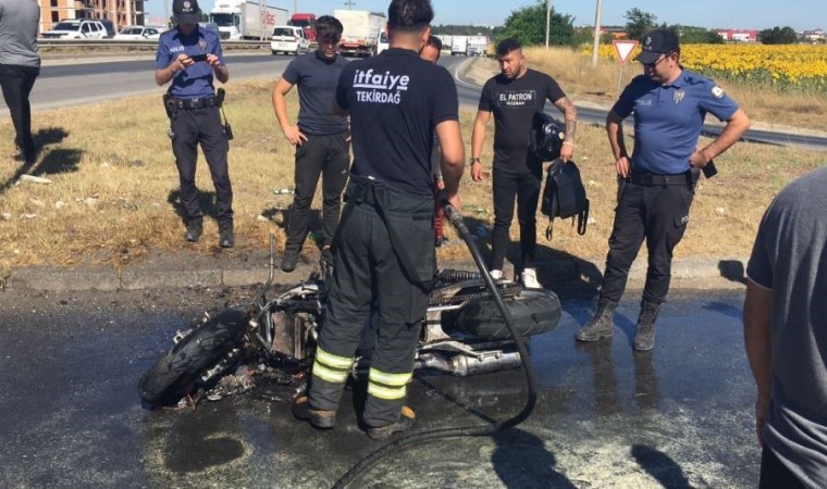 Olay, sabah saatlerinde Cezaevi Kavşağı’nda meydana geldi. İddiaya göre motosikletini tamirciye veren Ş.O., motosikletini tamirden aldıktan sonra test sürüşü yapmak istedi. Pınarça istikametinden motosikletiyle Çerkezköy istikametine seyir halinde ilerleyen Ş.O., motorundan dumanların yükseldiğini görünce Cezaevi Kavşağı’nda motorunu durdurarak durumu itfaiye ekiplerine bildirdi.
