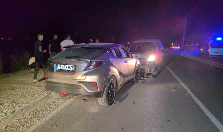 Kaza, saat 22.00 sıralarında Cumhuriyet ile Akhisar mahallelerini birbirine bağlayan yolda meydana geldi. Akhisar Mahallesi’nden Cumhuriyet Mahallesi’ne seyir halinde olan Tayyip Yasir A. (22) yönetimindeki 16 AEM 160 plakalı hafif ticari, sollama yaparken karşı yöne geçen sürücü Hediye F. (27) yönetimindeki 16 AFK 978 plakalı cip ile kafa kafaya çarpıştı. Kazada sürücüler ile cipteki yolcular Halide F. (26), Suna F. (15), Onur F. (4) ve Dilek F. (7) yaralandı. Yaralılar kaza yerine sevk edilen ambulanslarla İnegöl Devlet Hastanesine kaldırıldı.