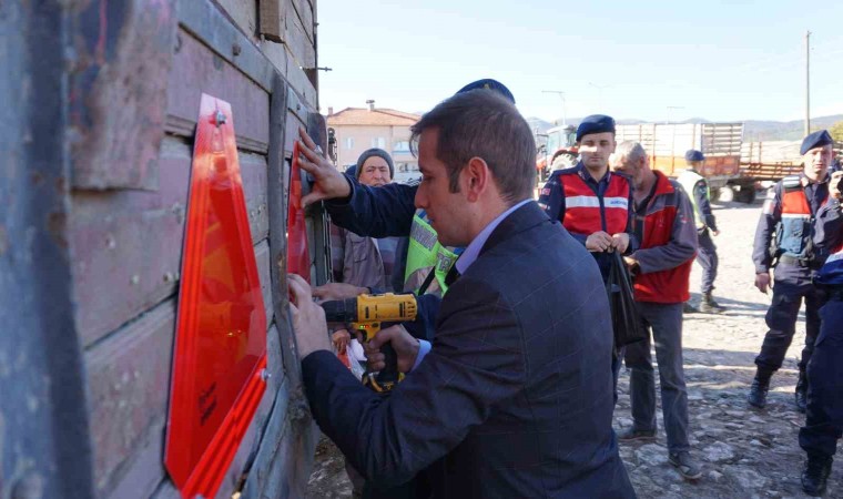 Burdur’un, Gölhisar ilçesinde traktörlerde bulunmaması halinde cezası 436 TL olan reflektör dağıtıldı. Gölhisar Kaymakamı Kadir Ulusoy," Alacağınız 250-300 liralık bir reflektör hem sizin canınızı hem karşı tarafın canını, eğer can kaybı olmazsa da malınızı korumaya yönelik bir tedbir" dedi.