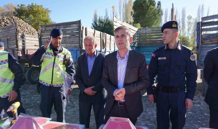 Ardından alanda bulunan traktör sürücülerine reflektörler dağıtılırken reflektör montajları da alanda yapıldı. Gölhisar Kaymakamı Kadir Ulusoy kendi elleriyle monte ettiği reflektörlerden sonra uyarılarını yinelerken üreticilere kazasız ve belasız bir pancar hasadı dönemi geçirmelerini temenni etti.