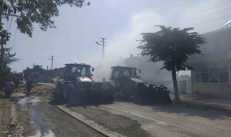 Tekirdağ’ın Ergene ilçesinde çıkan yangında saman yüklü tır ve tanker alev alev yandı.
