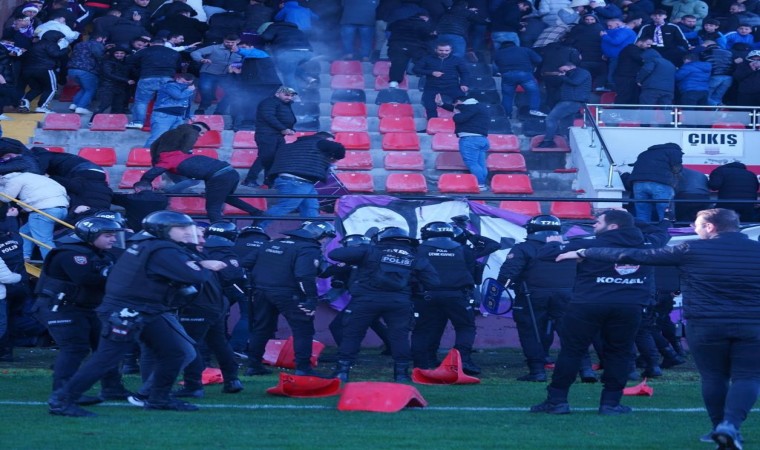 Kocaeli’de Bölgesel Amatör Lig maçında ortalık karıştı. Taraftarlar kırdıkları koltukları sahaya fırlatırken, polis ekipleri biber gazıyla müdahale etti. O anlar amatör kameralar tarafından kaydedildi.