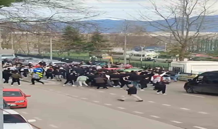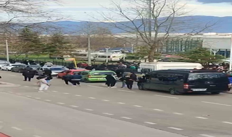 Artan kalabalığın üzerine bölgeye sevk edilen polis ekibi olayları yatıştırırken, taraftarların kavgaya tutuştuğu anlar ise kameraya anbean yansıdı.