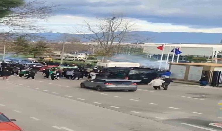 Bursa’da oynanan İnegöl Orhaniye Spor-İznik Spor maçı öncesi bir grup taraftar başka maç için gelen taraftarları rakip takımın taraftarları zannedince kavgaya tutuştu. Meşale ve torpillerin havada uçuştuğu kavga kameraya yansırken, olay polis ekiplerinin müdahalesiyle son buldu.