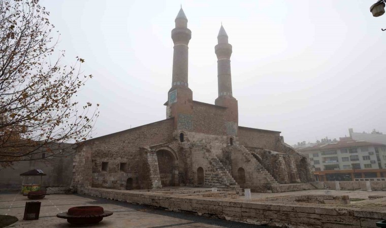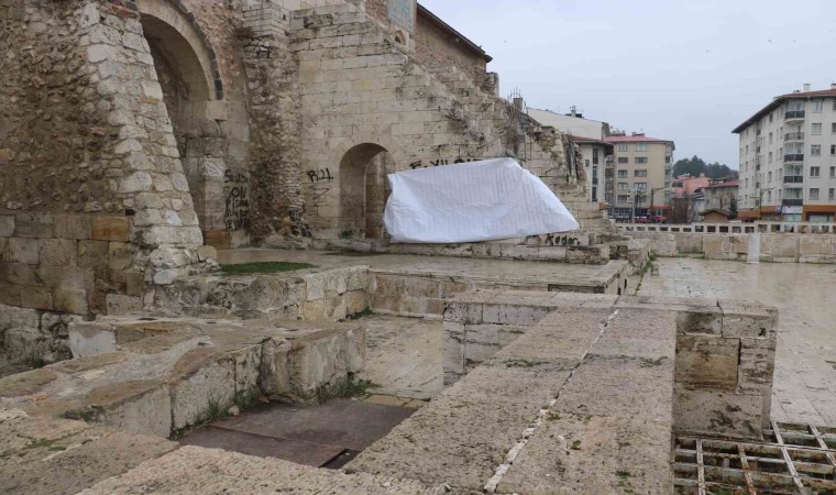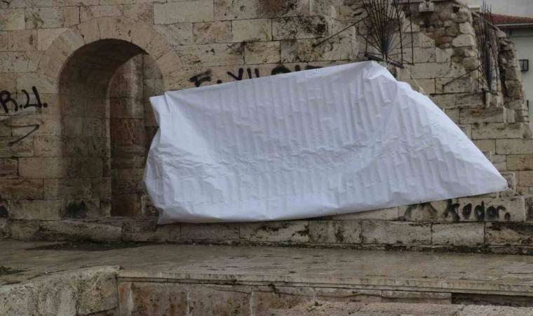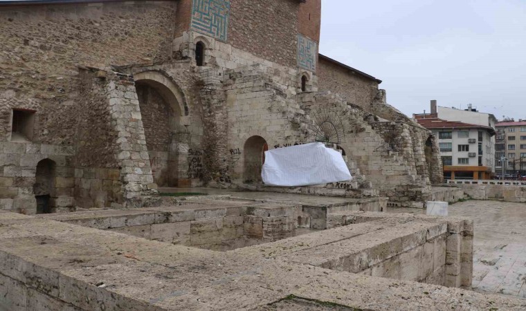 Sivas’ın simgelerinden biri olan 752 yıllık tarihi Çifte Minareli Medrese’nin üzerine sprey boyayla yazılan yazıların bir kısmı geçici olarak branda çekilerek kapatıldı.