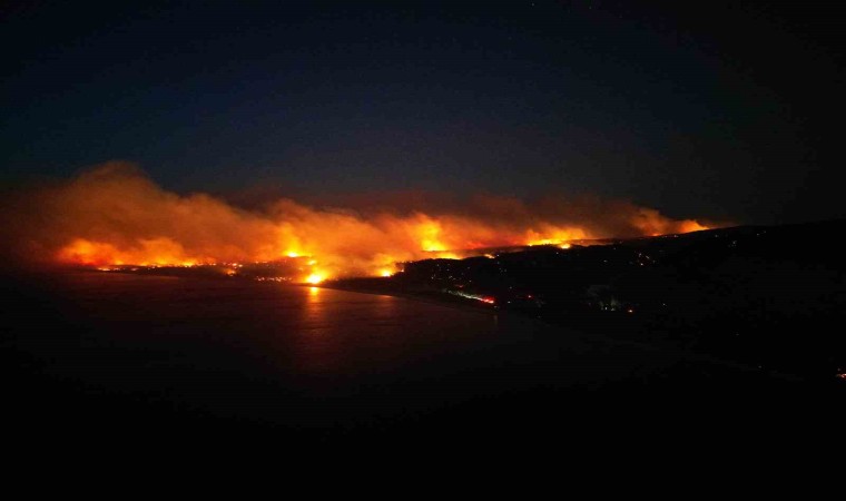 Arıburnu yarları ile Anzak Koyu bölgesinde gece devam eden yangın dron ile görüntülendi.