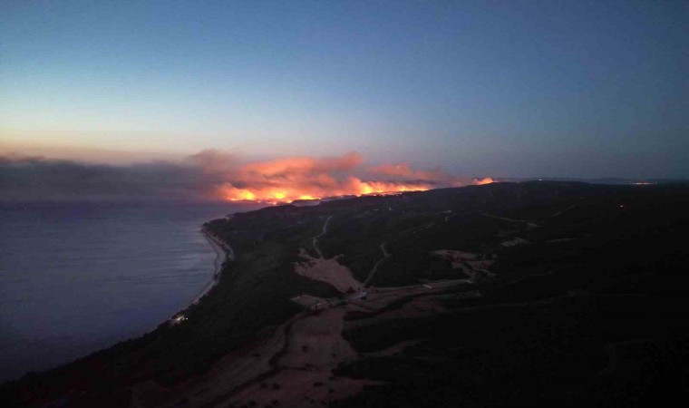 Çanakkale’nin Eceabat ilçesine bağlı Büyükanafarta köyü yakınlarında çıkan orman yangını dron ile görüntülendi.