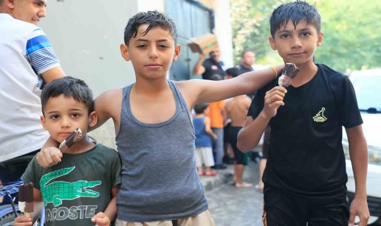 Polis ekiplerinin çocuklara dondurma dağıtması sevinçle karşılandı.