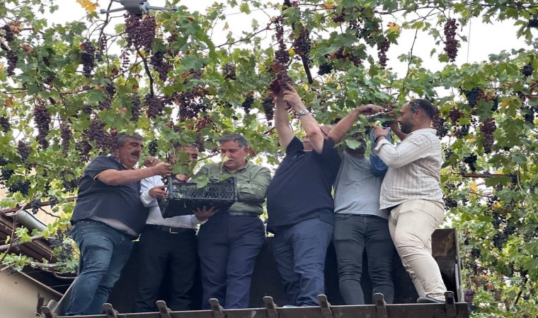 Kozan’da tarihi asırlar öncesine dayanan çarşıda geçtiğimiz yıllarda dikimi yapılan asmalardan bu yıl ikinci kez üzüm hasat edildi. AK Parti Adana Milletvekili Ahmet Zenbilci ve Kozan Belediye Başkanı Kazım Özgan, kepçe üstünde asmaların üzümlerini kasa kasa hasat ederek esnafa ikram etti.
