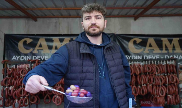 Vatandaşların en çok renkli zeytinlere ilgi gösterildiğini ifade eden Anıl Karaaslan, “40 gündür Samsun’dayız. Yöresel Ürün Fuarı’nda birçok ilden gelen satıcılar kendi yörelerinin ürünlerini hem tanıtıyorlar hem de satıyorlar. Ben de Aydın yöresinden ürünleri sergiliyorum. Standımızın en dikkat çeken ürünü renkli zeytinler. Mor zeytinimize rengini yaban mersini ile salamura ederek kazandırıyoruz. Kırmızı zeytinimizi de pancar ile salamura ederek renklendiriyoruz. Bu renkleri tamamen doğal yöntemlerle elde ediyoruz. İnsanlarımızın de en çok bu zeytinler dikkatini çekiyor. Zeytinlerin kilosunu 250 TL’den satışa sunuyoruz. Doğal zeytinyağımız, kuşburnumuz ve birçok ürünümüz var. Halkımıza ürünlerimizi tanıtıyoruz” diye konuştu.