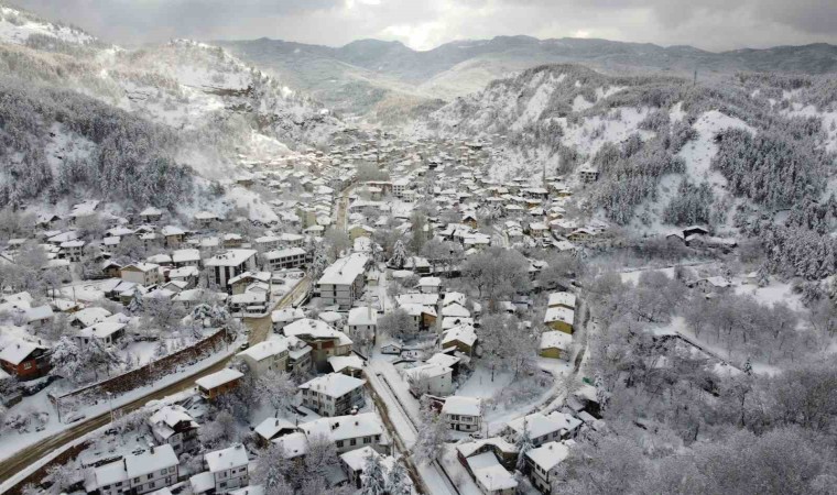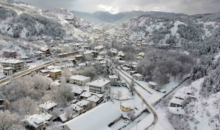UNESCO Dünya Mirası Geçici Listesi’nde yer alan Bolu’nun Mudurnu ilçesinde dün başlayan ve gece boyu devam eden kar yağışı, İpek yolu güzergâhı üzerinde bulunan Osmanlı Kasabası’nı beyaz örtüyle kapladı. Kar yağışı nedeniyle beyaza bürünen tarihi ilçede kar kalınlığı 30 santimetreye yaklaştı. Osmanlı döneminden kalma han, hamam, cami, çeşme ve konakların bulunduğu ilçe karla güzel görüntü oluşturdu. Ortaya kartpostallık görüntülerin çıktığı tarihi ilçe, dronla görüntülendi.