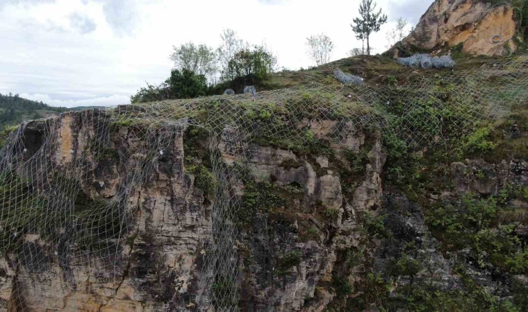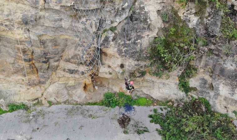 Yüklenici firma tarafından profesyonel dağcıların da yardımıyla kayaların üzerine sarkıtılan çelik ağlar, 10 metrelik çivilerle kayalara sabitlenecek. Bu sayede kayaların üzerine yapılan çelik örtülemeyle en büyük kaya parçalarına dahi ağlar güçlendirilecek.