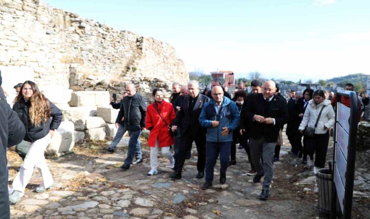 Tarihi Kentler Birliği 2’nci Olağan Meclis Toplantısı için Muğla Büyükşehir ve Menteşe Belediyesi’nin ev sahipliğinde Muğla’da bulunan Belediye Başkanları ve Meclis üyeleri Yatağan ilçesinde bulunan 3 bin yıllık dünyanın en büyük mermer antik kenti ve gladyatörler kenti Strtatonikeia’yı gezdi.