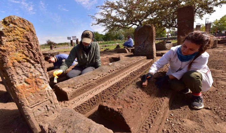 “Bu seneki çalışmalarda daha önce söylediğim gibi toprak altında belki binlerce mezar taşı var. Bunların açığa çıkarılması, özgün haline kavuşturulması gerekiyor şeklinde fikir beyan etmiştik ve fikirlerimiz zaten adım adım hayata geçiriliyor. Bu seneki çalışmalarda toprak altından çok nitelikli mezar taşları çıktı. Özellikle 6 tane sanduka hem yazıları hem süslemeleri ile Selçuklu üslubunu önemli ölçüde yansıtan örnekler. Çünkü hem bitkisel hem geometrik süslemeler hem yazı karakteri tamamen Selçuklu dönemini aksettiriyor. O nedenle bu mezar taşlarını fazla önemsiyoruz. Bu çalışmalar devam ettikçe de bu tür yeni mezarlar ortaya çıkarılacak ve alanda koruma altına alınarak sergilenecek. Çalışmaların bir diğer önemli boyutu, süreç içerisinde zemini bozulmuş mezar taşlarına müdahale ederek özgün hallerine kavuşturma konusudur. Onu da adım adım gerçekleştiriyoruz. Bu meyanda da yaklaşık 80 mezar taşına blokaj uygulaması gerçekleştirildi. Zeminler düzeltiliyor, yüzey toprağı alınıyor ve mezarlık çok daha güzel hale geliyor.”