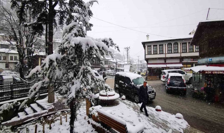 Bolu’nun tarihi Mudurnu ve Göynük ilçelerinde etkili olan kar yağışı dolayısıyla yeşil alanlar beyaz örtüyle kaplandı.