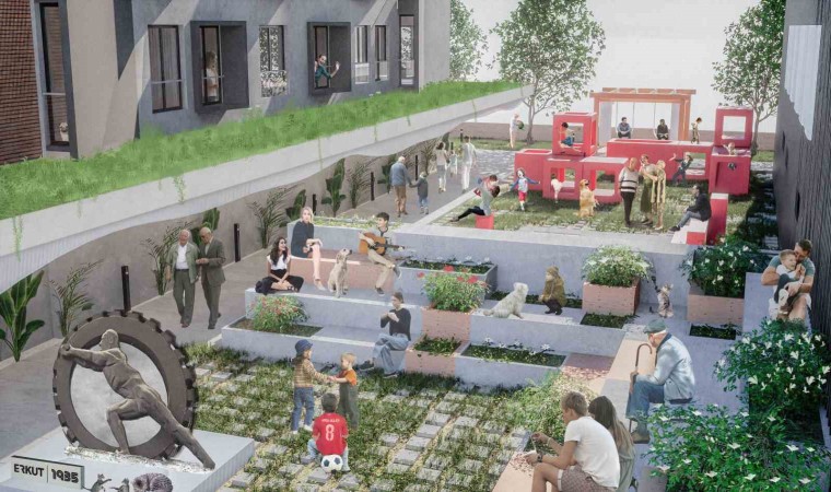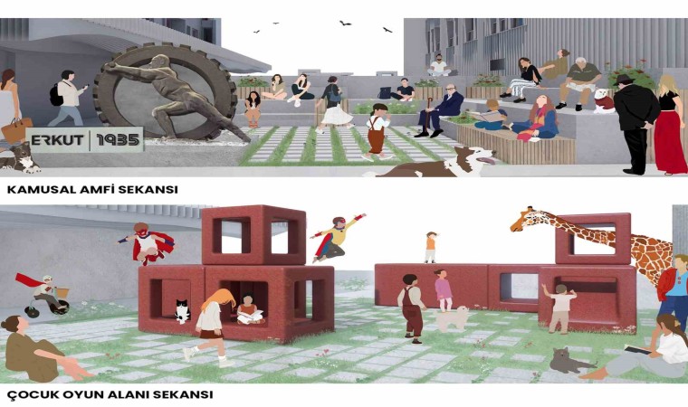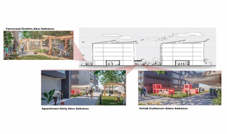 Sertaç Erbilgin, Gökalp Kalfa ve Zehra Çelik’in üçüncülük alan projesi, Kayseri’nin tarihi dokusundaki kumaşı konut projesinde yenilikçi bir biçimde yansıtmasıyla dikkat çekerek ödüle layık görüldü. Üçüncülük ödülü alan projeleri ile ilgili bilgi veren genç mimarlar, “Kayseri’de 1935 yılında kurulan Sümerbank Bez Fabrikası hem tarihi hem de kültürel önemiyle öne çıkan bir yapı. Bu alanın karşısında yer alan yeni bir konut projesi kapsamında, fabrikanın anısını yaşatmak ve “Geçmişe Bir Pencere, Geleceğe Bir Bakış” teması doğrultusunda mekansal düzenlemeler yapılması amaçlanmıştı. Biz de projemizi geliştirirken, Sümerbank Bez Fabrikası’na atıfta bulunarak, peyzaj alanlarında ve giriş sirkülasyon alanlarında çeşitli dokuma ve kumaş temaları kullanılarak tasarladık. Projenin en önemli noktalarında kumaş malzemesine yer verdik. Peyzaj alanında çocuk oyun alanları, kamusal amfi, dikey tarım alanları ve çoklu kullanım küpleri gibi çok çeşitli kullanım alanları tasarladık. Bu alanlar hem sosyal etkileşimi artırmak hem de sürdürülebilir yaşam tarzlarını teşvik etmek amacıyla düşünüldü” dedi.