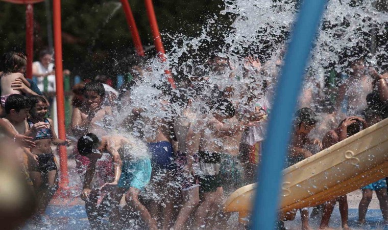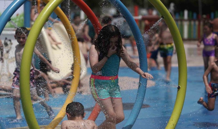 Türkiye’nin en sıcak günü olarak tarihe geçen bugünde Bursa’da çocuklar su parkında serinlemeye çalıştı.