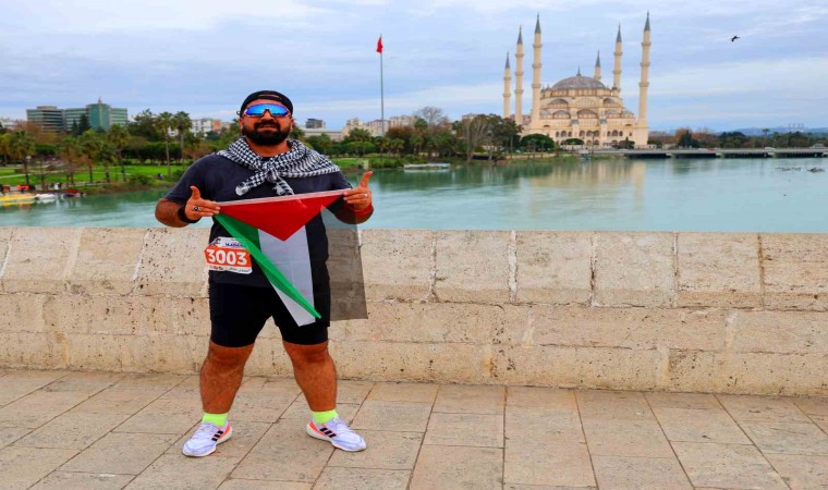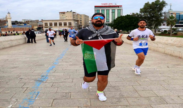 Türk bayrağı ve Filistin bayrağı ile koştular