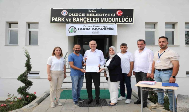 Düzce Belediye Başkanı Dr. Faruk Özlü’nün girişimi ile kurulan Tarım Akademisi’nin, Tarım ve Orman İl Müdürlüğü iş birliği ile düzenlediği Meyve Ağacı Aşılama Kursu ilk dönem mezunlarının belgeleri verildi.
