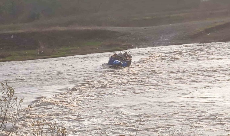 Zonguldak’ın Alaplı ilçesinde "pat pat" olarak tabir edilen tarım aracıyla geçmeye çalıştığı çayda su seviyesinin aniden yükselmesiyle mahsur kalan sürücü, iş makinasıyla kurtarıldı.