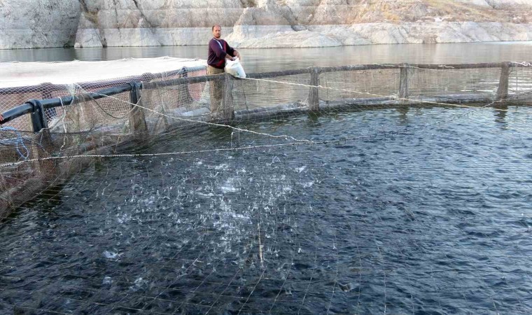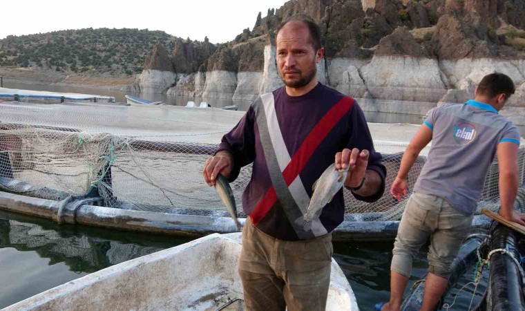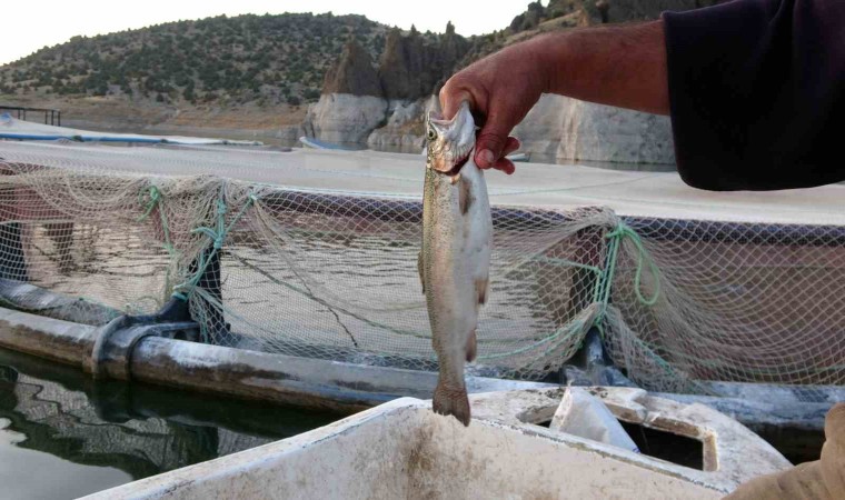Kendi imkanıyla Çekerek Barajı’na 2014 yılında 13 üretim kafesi kuran Erol, yılda 75 ton alabalık üreterek geçimini balıkçılıkla sağlıyor.