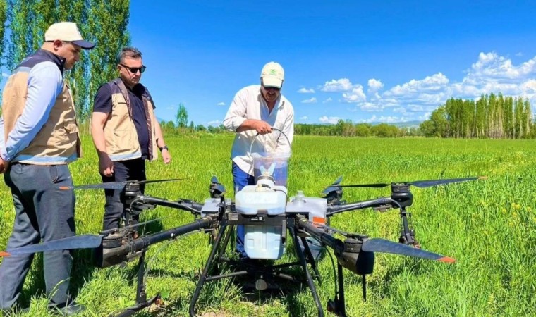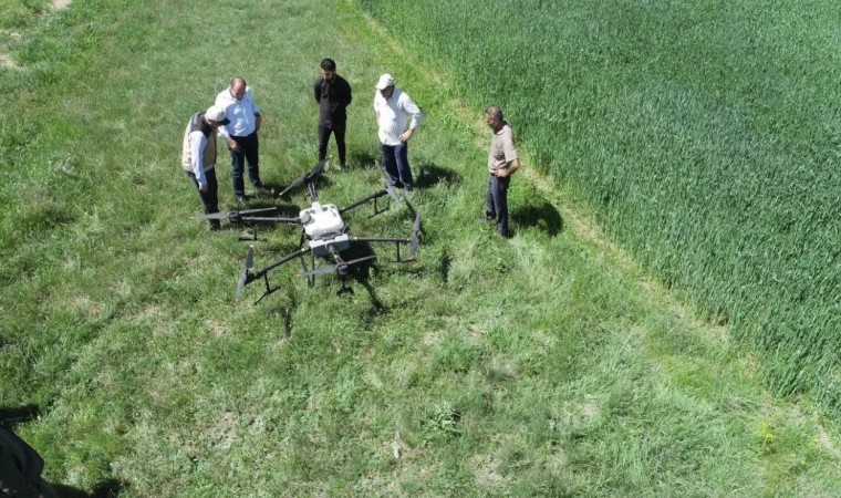 Bayburt’ta hububat alanlarında görülen hastalık zararlılarına karşı, özel sektöre ait tarım droneleri ile ilaçlama yapıldı.