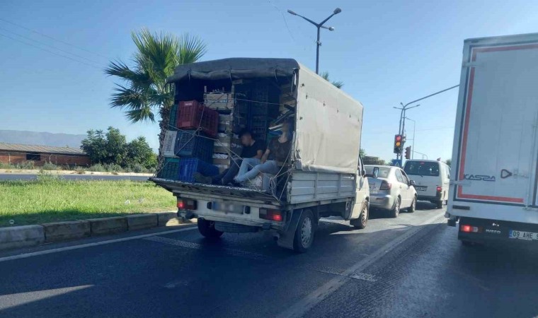 Aydın-Denizli karayolu üzerinde içi taşıyan pek çok araçta işçilerin adeta kuş tüyü döşekte gibi plastik kasaların üzerinde uyku çekmesi objektiflere yansırken, tarım işçiliğinin zorluğunu da gözler önüne seriyor.