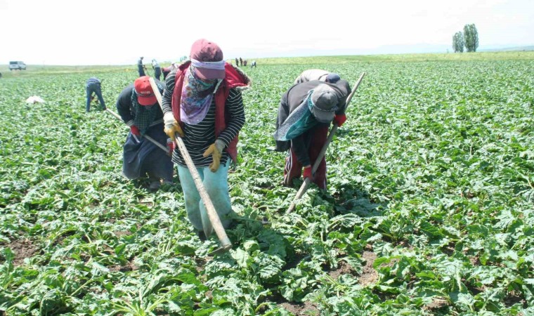 Muş’un Bulanık ilçesinde yaklaşık 24 bin dekar alanda pancar üretiminin yapıldığı tarlalarda çalışan kadın işçiler, sabah erken saatlerde başlayıp gün batımına kadar çapa yapıyor.
