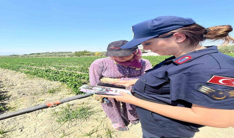 Manisa İl Jandarma Komutanlığınca Yunusemre ilçesinin Üçpınar Mahallesindeki tarım işçisi kadınlara hem bilgilendirme yapıldı hem de KADES uygulaması yükletildi.