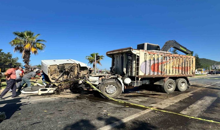 Antalya’nın Gazipaşa ilçesinde sebze yüklü tırla, iş makinesi yüklü kamyonun çarpışması sonucu meydana gelen kazada ağır yaralanan kamyon sürücüsü 24 yaşındaki Özgür Şenli, kaldırıldığı hastanede hayatını kaybetti. Yaşanan korkunç kaza, güvenlik kameraları tarafından saniye saniye kaydedildi.