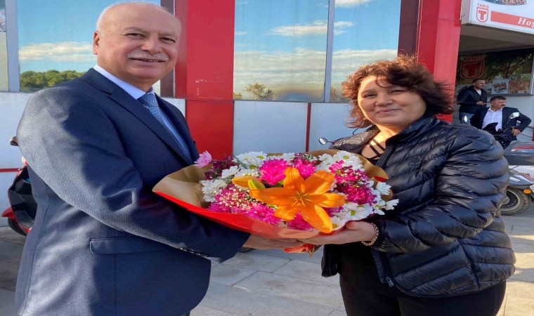 Ahmet Adak’ı ilk kutlayan ise eşi Hayriye Adak oldu. Haberi alan Hayriye Adak eşine çiçek vererek başarılar diledi.