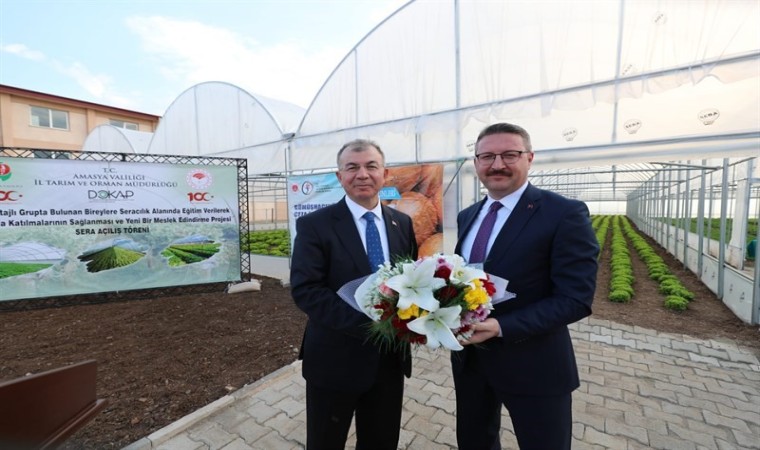 DOKAP’ın desteğiyle hayata geçirilen ‘Dezavantajlı Grupta Bulunan Bireylere Seracılık Alanında Eğitim Verilerek, İstihdama Katılmalarının Sağlanması ve Yeni Bir Meslek Edindirme Projesi’ çerçevesindeki açılışa Amasya Valisi Yılmaz Doruk, Amasya Cumhuriyet Başsavcısı Mahmut Bıçakcı, Adalet Komisyonu Başkanı Ömer Yoldaş ve diğer yetkililer katıldı.