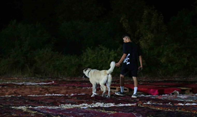 Kangal köpeği ile birlikte tarla çevresinde nöbet tutan gençlerden Halil Mert Topkara, kış aylarında ekilen tarlaların mahsul verdikten sonra biçildiğini ve ardından tarlanın halılar için kullanıldığını söyledi. Halıların son derece değerli olduğunu belirten Topkara, “Akşamları değişmeli nöbet tutuyoruz. Domuz gibi yırtıcı hayvanlar oluyor. Bunlar bekçilerimize saldırabiliyor veya halıları yırtabilirler. Onlara karşı köpekle uzaklaştırıyorum. En ufak seste hemen havlamaya başlıyorlar, hırsızlık amacıyla gelen olursa ses çıkartarak onları kaçırıyorlar. Gece gündüz nöbetteyiz zaten” dedi.