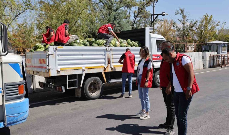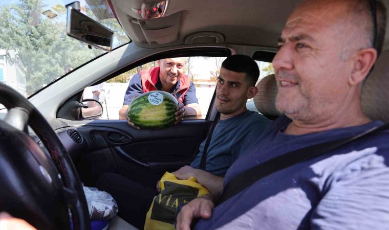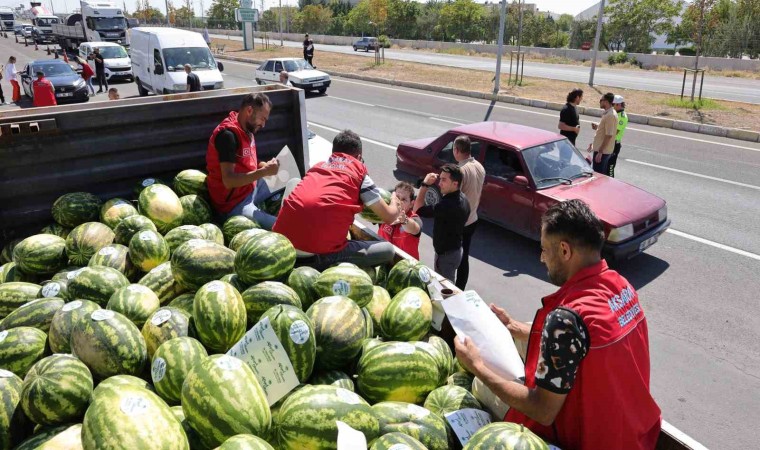 Aksaray’da çiftçiye destek olmak amacıyla yaklaşık 80 ton karpuz belediye ekiplerince tarladan toplanarak vatandaşlara ve karayolunda seyahat eden sürücü ile yolculara dağıtıldı.
