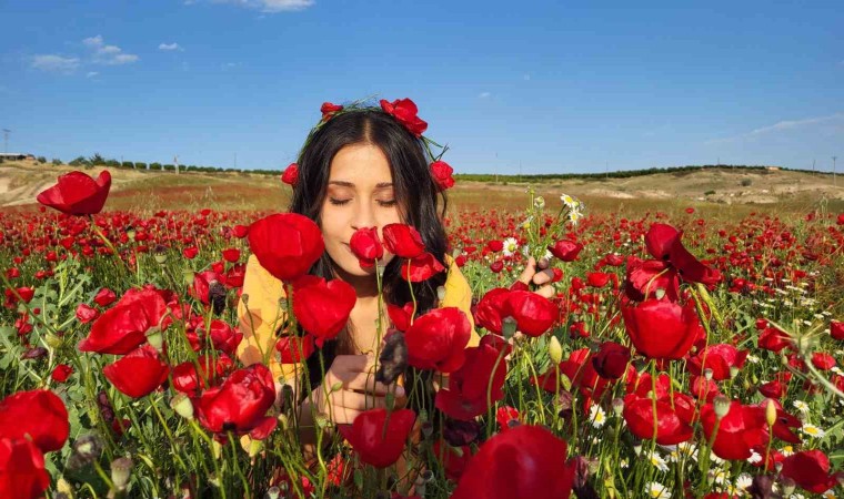 İsmini geleneksel Türk gelinliklerinin kırmızı almasından alan gelincikler, doğanın güzelliğini renklendiriyor. Kızıl rengin kapladığı nohut tarlalarında nohutlar görünmüyor.