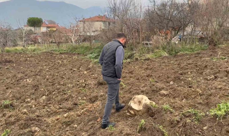 Bursa’nın İznik ilçesine bağlı Hocaköy’de, tarlasını süren bir çiftçi pulluğuna lahit takıldı.