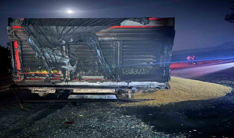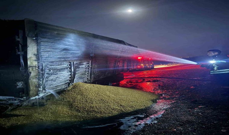 Alınan bilgiye göre, Çamalan bölgesi Alman Mezarlığı civarında B.G.’nin kontrolündeki buğday yüklü 42 ERG 15 kupa plakalı tırın 42 ERK 59 plakalı dorse bölümünün alt kısmından dumanlar yükseldi.