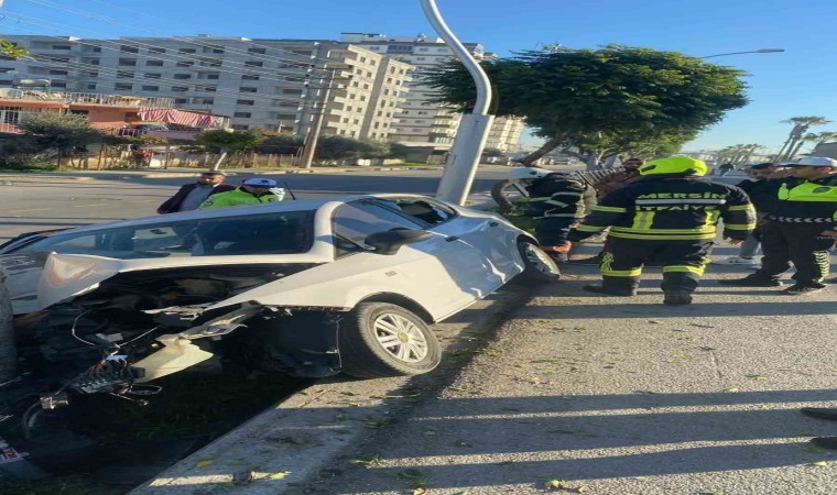 Çarpmanın etkisiyle aracın ön bölümü zarar gördü. Araç içerisinde sıkışan sürücü, ihbar üzerine olay yerine intikal eden Mersin Büyükşehir Belediyesi İtfaiyesi arama-kurtarma ekipleri tarafından bulunduğu yerden çıkartılarak, sağlık ekiplerine teslim edildi.