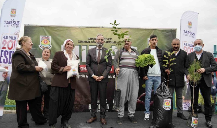 Tarsus Belediye Başkanı Haluk Bozdoğan’ın katılımıyla gerçekleşen etkinlikte, toplamda 2 ton portakal, 2 ton limon, bin ton mandalina, 5 bin marul, 2 bin paket kurutulmuş biberiye, bin paket kurutulmuş lavanta, bin paket kurutulmuş kekik, 6 bin harnup fidanı, 2 bin badem fidanı, 5 bin biberiye fidanı, bin kekik fidanı, 500 limon fidanı, 500 turunç fidanı, bin fıstık çamı, bin defne fidanı, 500 gül fidanı, 50 bin silajlık mısır yemi, 10 ton buğday unu, 10 bin yerli kıvırcık marul fidanı, 2 bin karnabahar fidesi, 5 bin kabak fidesi, bin patlıcan fidanı, bin biber fidanı, bin domates fidanı, 10 bin süs bitkisi ekilmek üzere vatandaşlara dağıtıldı.