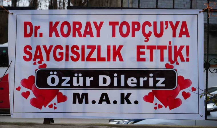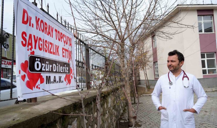 Hasköy İlçe Toplum Sağlığı Merkezinde aile hekimi olarak çalışan Dr. Koray Topçu (41), hasta muayene ettiği esnada hasta ve hasta yakını ile aralarında yaşanan tartışma tatlıya bağlandı. Yaptıkları davranıştan pişmanlık duyan hasta ve hasta yakını, doktorun gönlünü almayı bildi. Yaşanılan tartışmayı tatlıya bağlamak için hasta ve hasta yakını, toplum sağlığı merkezinin bahçe duvarının korkuluklarına bir pankart asttı. “Dr. Koray Topçu’ya saygısızlık ettik! Özür dileriz. M.A.K.” yazılı pankart Dr. Topçu’yu duygulandırırken, çevredeki vatandaşların ise takdirini topladı.