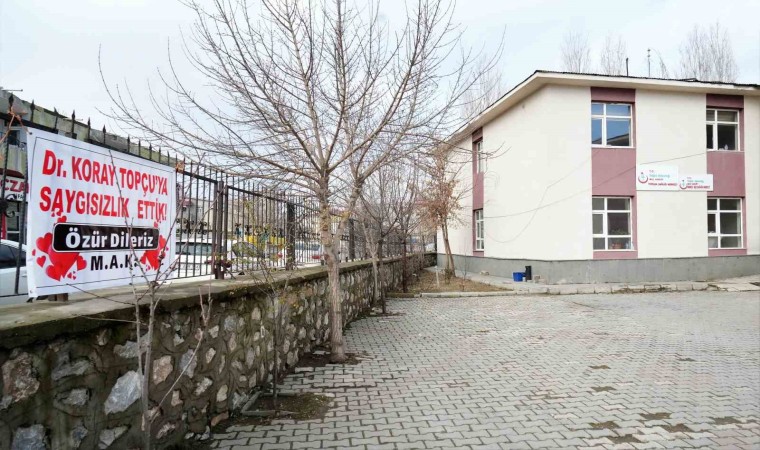 Muş’un Hasköy ilçesinde hasta ve hasta yakını, tartıştıkları doktordan özür dilemek için toplum sağlığı merkezi girişine pankart astılar.