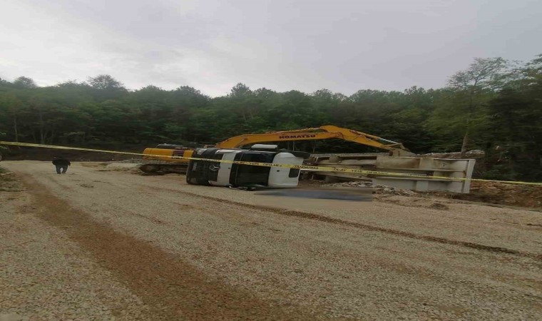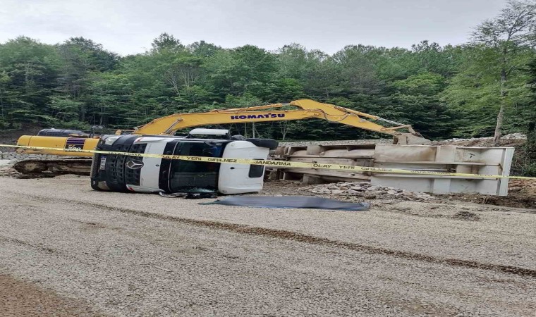 İlçeye bağlı Gökçealan köyünde yol inşaatına malzeme taşıyan Enver Güdük (65) idaresindeki taş yüklü kamyon, yol çalışmalarının yapıldığı alanda malzeme boşalttığı sırada sürücünün kontrolü kaybetmesi sonucu devrildi.