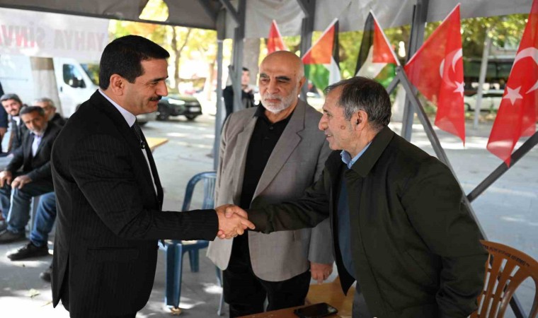 Battalgazi Belediye Başkanı Bayram Taşkın, Hamas’ın şehit lideri Yahya Sinvar için Kernek Meydanı’nda kurulan taziye çadırını ziyaret ederek, merhum mücahide rahmet diledi.